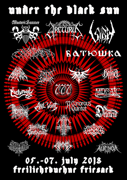 777 | A CARNOROUS QUINTET | ABHOMINE | ANAL VOMIT | ARCTURUS | AUTHOR | BATUSHKA | CIRITH GORGOR | DELETERE | FIN | HALPHAS | HELLFIRE DEATHCULT | HORN | MASTERS HAMMER | MOSAIC | NOCTURNAL | OUTRE | SCHRAT | SHROUD OF SATAN | SIGH | THRONEUM | WOLVES IN THE THRONE ROOM